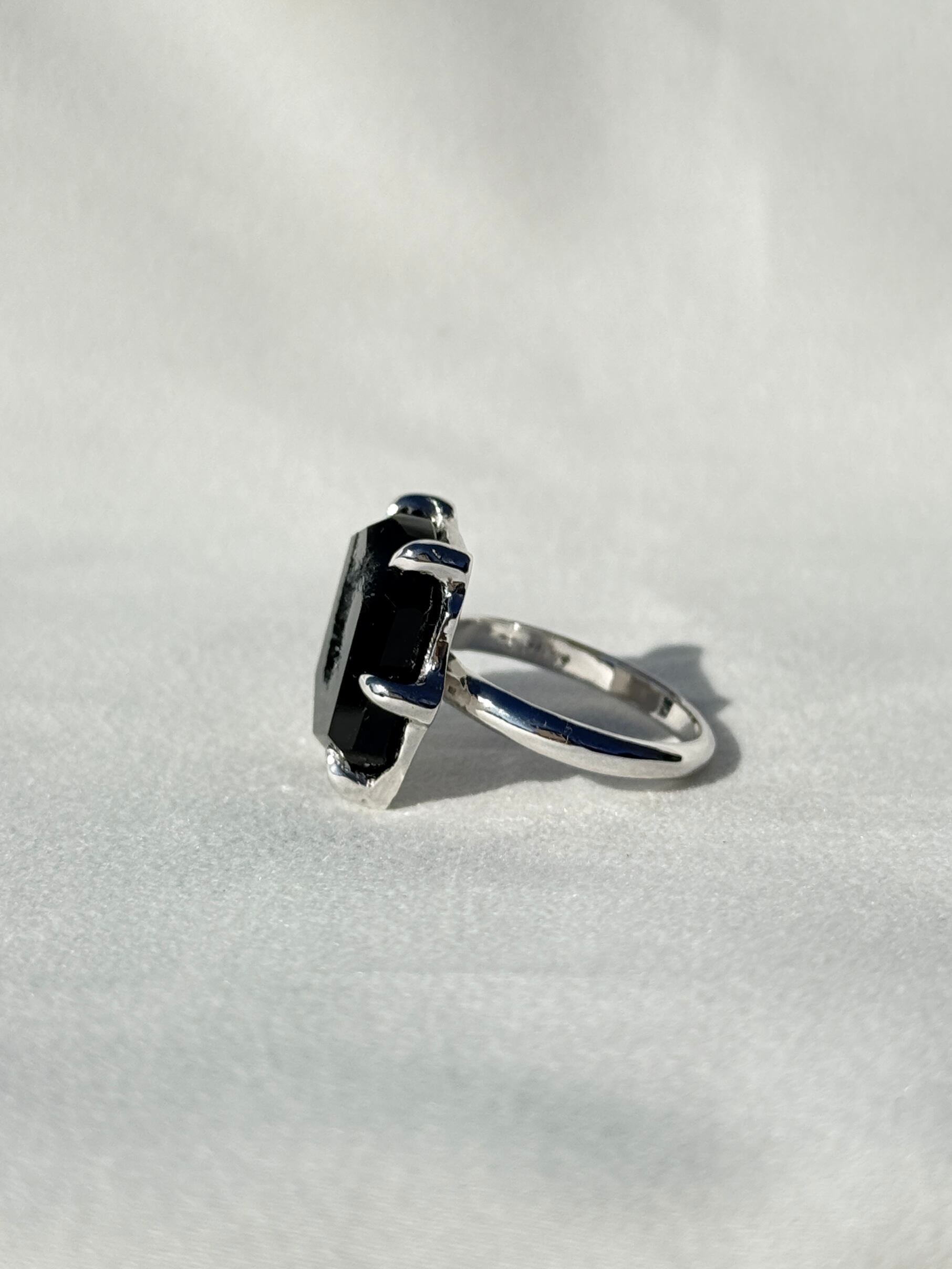 オニキスを包み込むように配置された爪が、ほどよい力強さと個性を添えています。主張しすぎない造形の中に、意味を持たせた仕立てです。